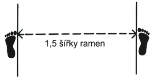 - Špičky (osy chodidel) směřují dopředu, váha těla je rozložena rovnoměrně na obě nohy, tělo vzpřímené.